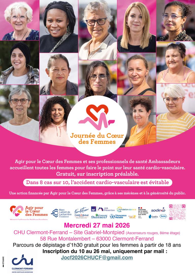 Agir pour le Coeur des Femmes et le CHU de Clermont-Ferrand accueillent toutes les femmes pour faire le point sur leur santé cardio-vasculaire.