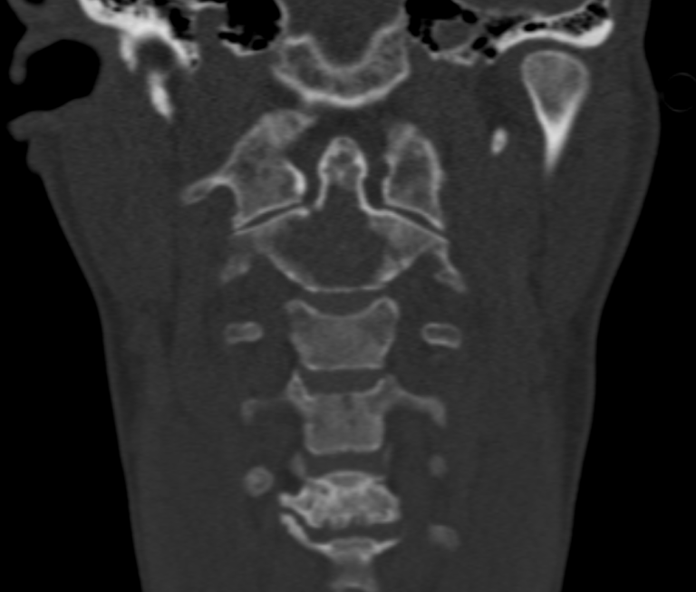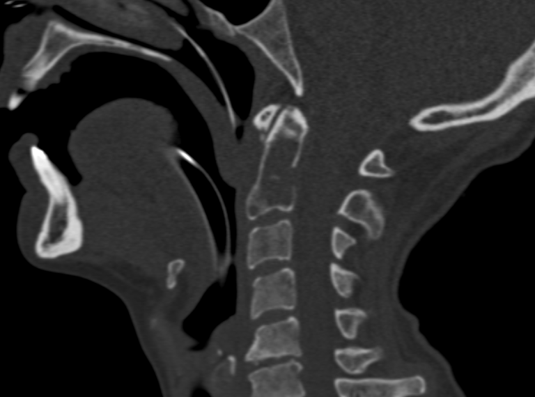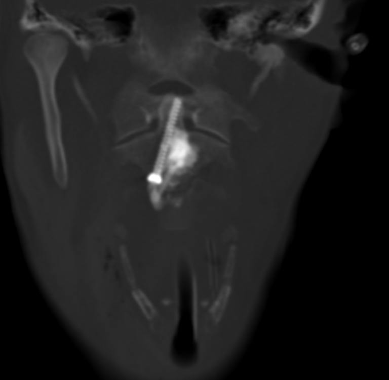 Les métastases osseuses sont fréquentes chez les patients atteints de cancer, touchant près de la moitié d’entre eux. Elles entraînent souvent douleurs et fractures dites « pathologiques », avec un impact majeur sur l’autonomie et la qualité de vie. Dans ce cas, la patiente souffrait d’une lésion ostéolytique à haut risque fracturaire de la dent de C2, nécessitant le port d’une minerve rigide, mal tolérée et très invalidante.