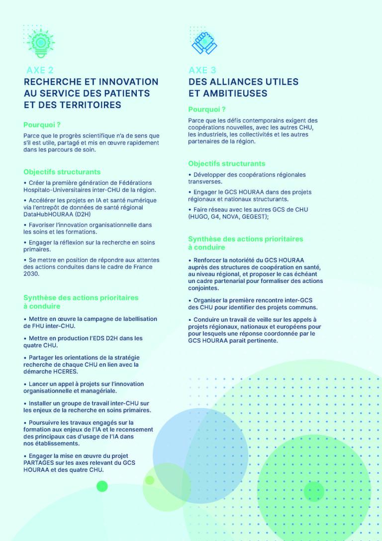 Lancement des premières Fédérations Hospitalo-Universitaires inter-CHU, mise en réseau des entrepôts de santé des quatre CHU dans le cadre du projet DataHubHOURAA (D2H) et soutien aux projets d’intelligence artificielle et d’innovation organisationnelle.
