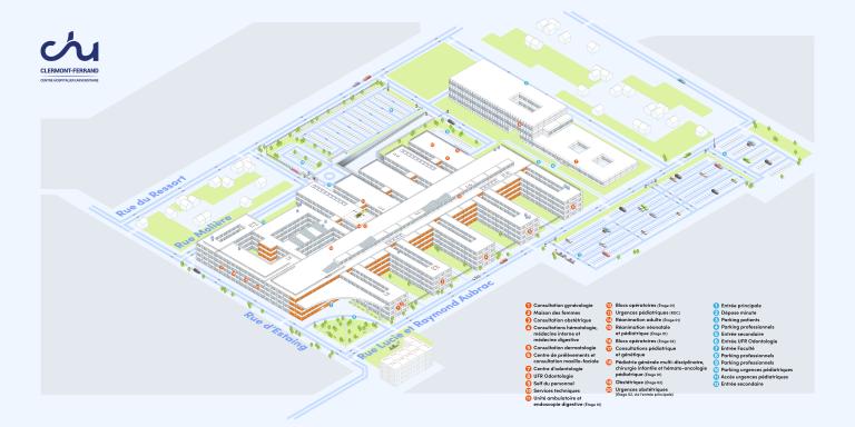 Les sites du CHU partager imprimer Hôpital Gabriel-Montpied En savoir plus ⛶ Ouvrir le plan en plein écran Hôpital Estaing En savoir plus ⛶ Ouvrir le plan en plein écran Hôpital Estaing Hôpital Louise-Michel En savoir plus ⛶ Ouvrir le plan en plein écran