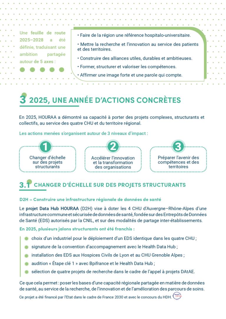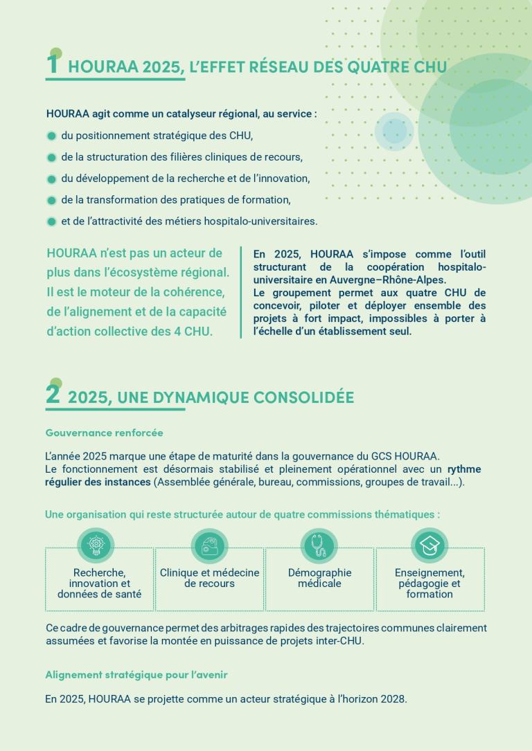 La région Auvergne-Rhône-Alpes est singulière : elle est la région qui concentre le plus grand nombre de CHU. Cela doit donc devenir notre atout collectif et c’est toute l’ambition du GCS HOURAA : incarner une alliance capable de projeter la puissance d’intervention hospitalouniversitaire de la région dans les grands réseaux internationaux, offrir à notre environnement politique, institutionnel, académique, social et industriel, une porte d’entrée réactive et adaptée aux enjeux de transformation du système de santé…