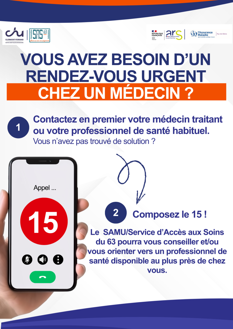 Dans le Puy-de-Dôme, le SAS mobilise un large réseau de professionnels de santé : médecins généralistes, pédiatres, infirmiers, sages-femmes, maisons de santé pluriprofessionnelles, centres de santé et centres de soins non programmés.